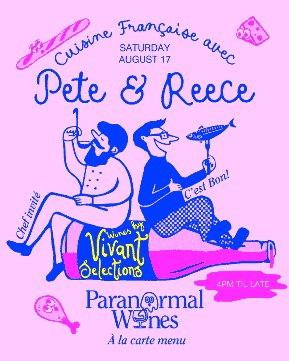 Join us for an evening of fine French cookery with chefs Pete Cooksley and Reece Inkpen. Pete, a good mate who’s worked at our favourites like Embla in Melbourne and Franklin & Lucinda in Hobart (RIP), will be serving up a wintery feast inspired by local produce and ‘cuisine bourgeois’ alongside Reece. Vivant Selections are bringing down some rare French wines from Sydney to pair with their dishes.